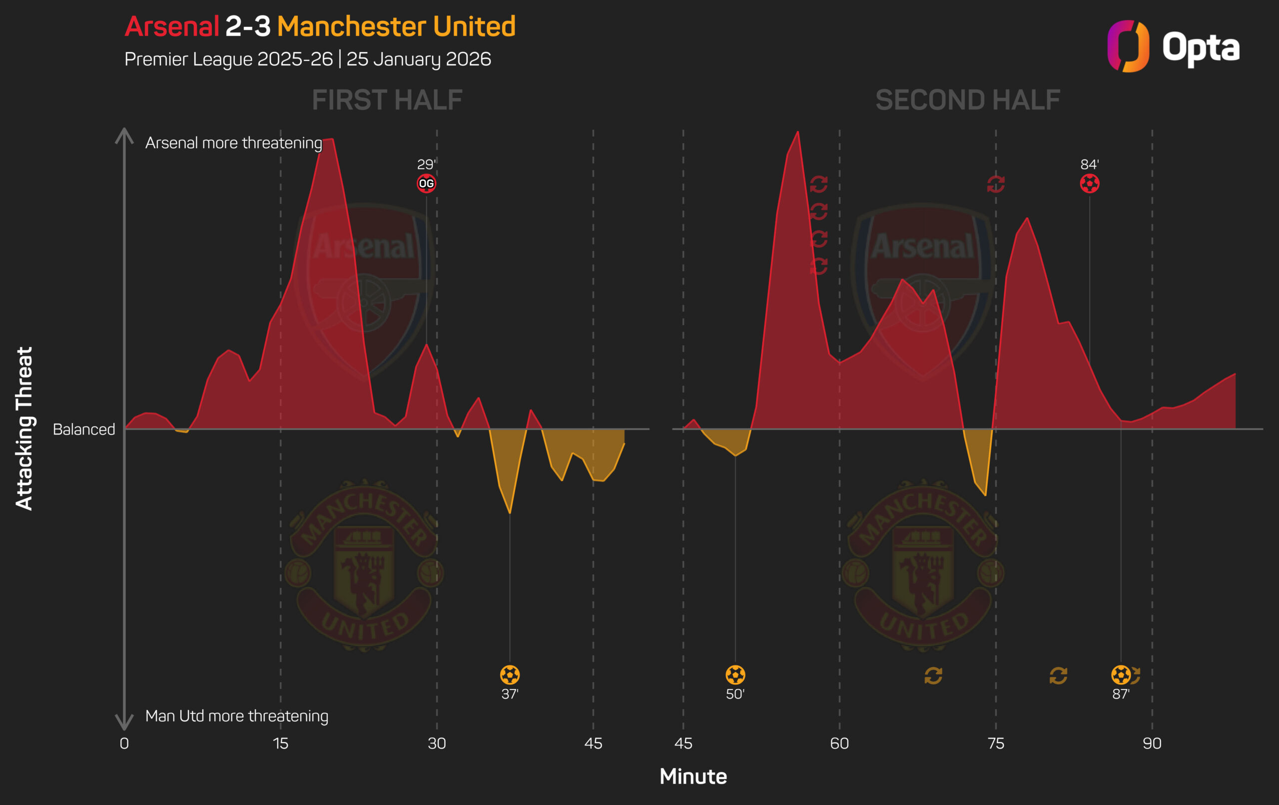 This was the Red Devils’first comeback victory away to Arsenal in the Premier League since February 2005 (a 4-2 win); they had trailed on 12 occasions away to the Gunners in the period since, losing 11 of them (D1).