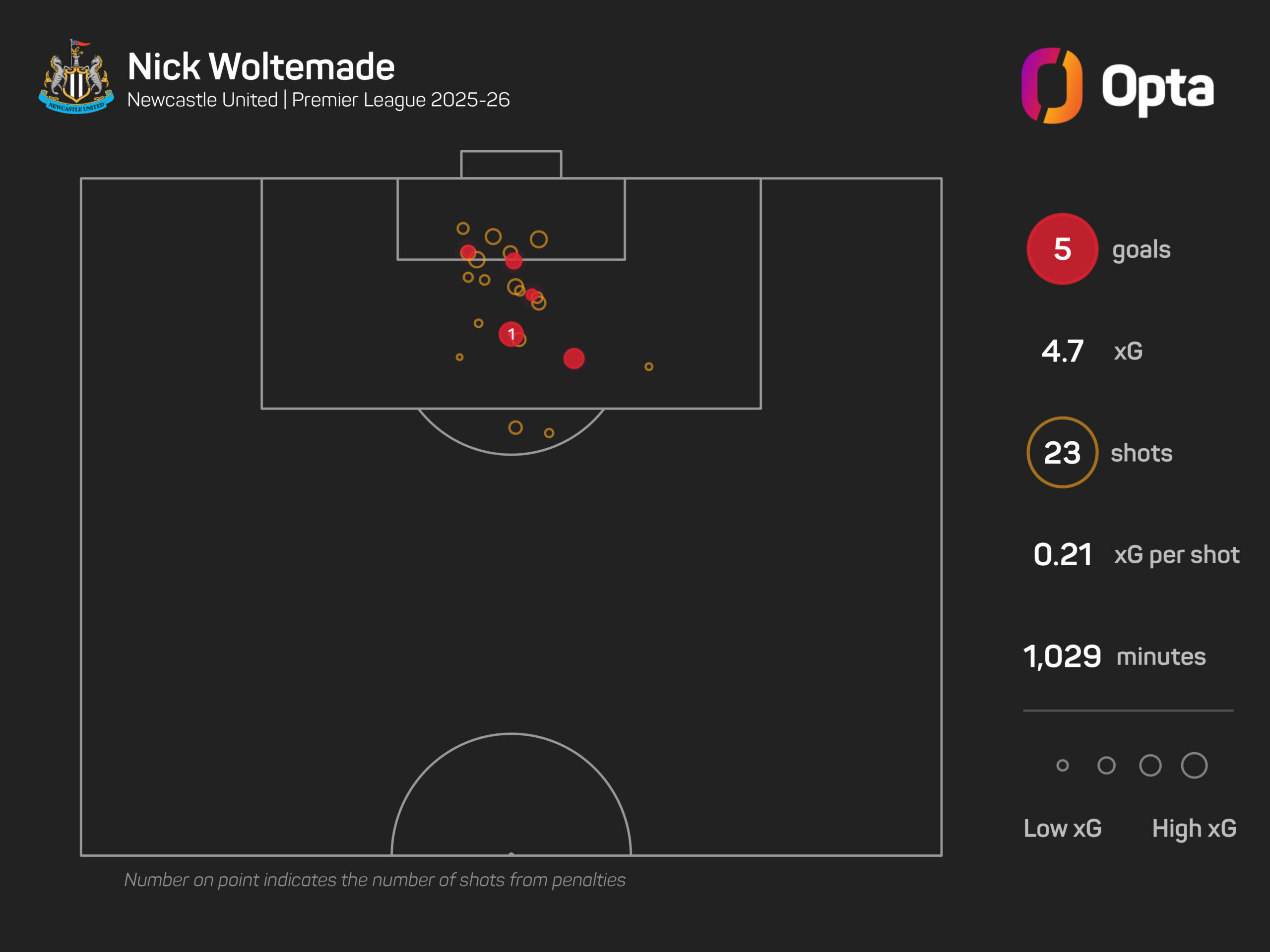 Woltemade has scored seven goals in 21 appearances for Newcastle across all competitions.