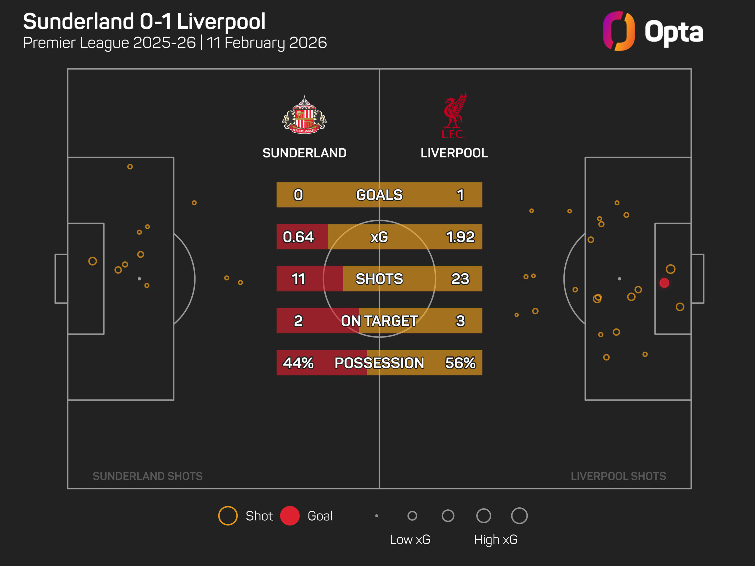 At the other end, though Sunderland attempted to fight back after going behind, they managed just 11 shots, two of which were on target, as they struggled to truly test Alisson.