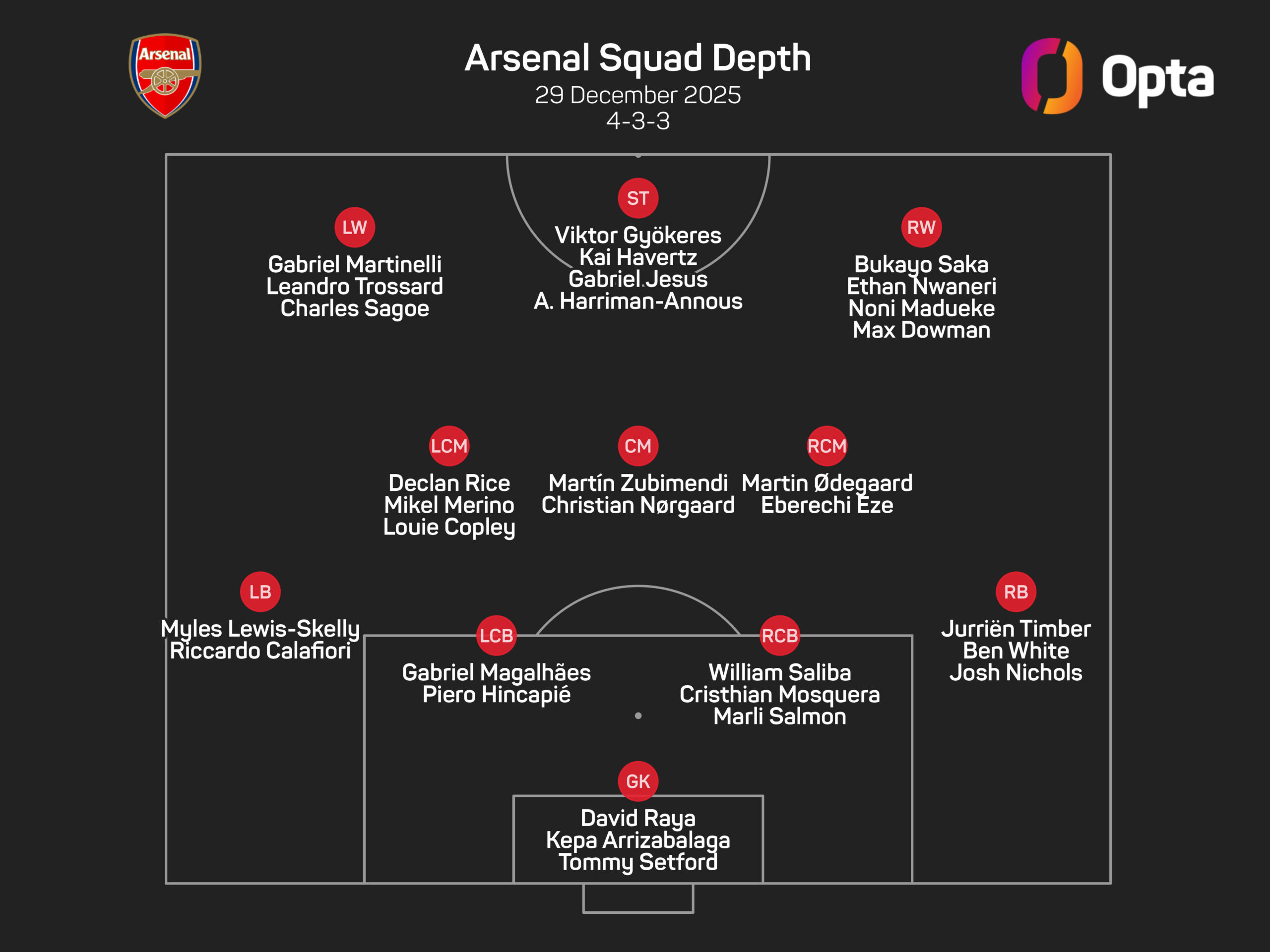 The Gunners have had to cope without a glut of key players this season, withMartin Odegaard, Kai Havertz, Gabriel Jesus and GabrielMagalhaes all out of action for long stints, while Ben White, Riccardo Calafiori, Cristhian Mosqueraand Jurrien Timber have all sustained injuries lately.